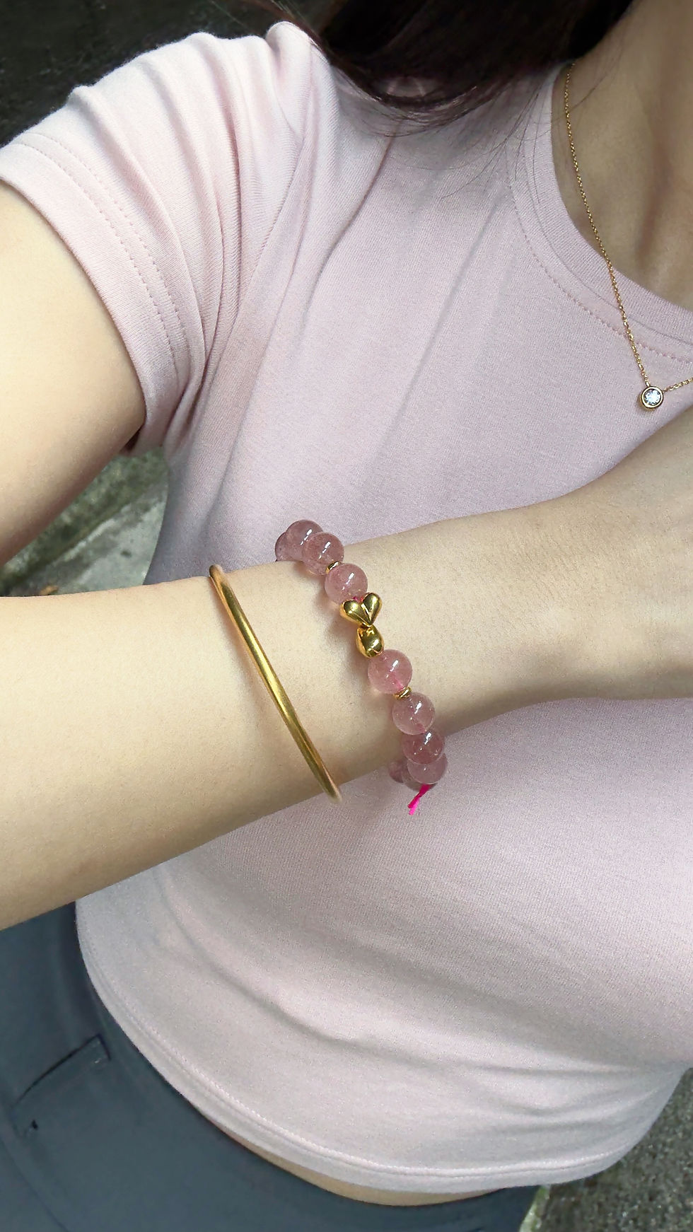 雙屁桃蝴蝶結粉晶